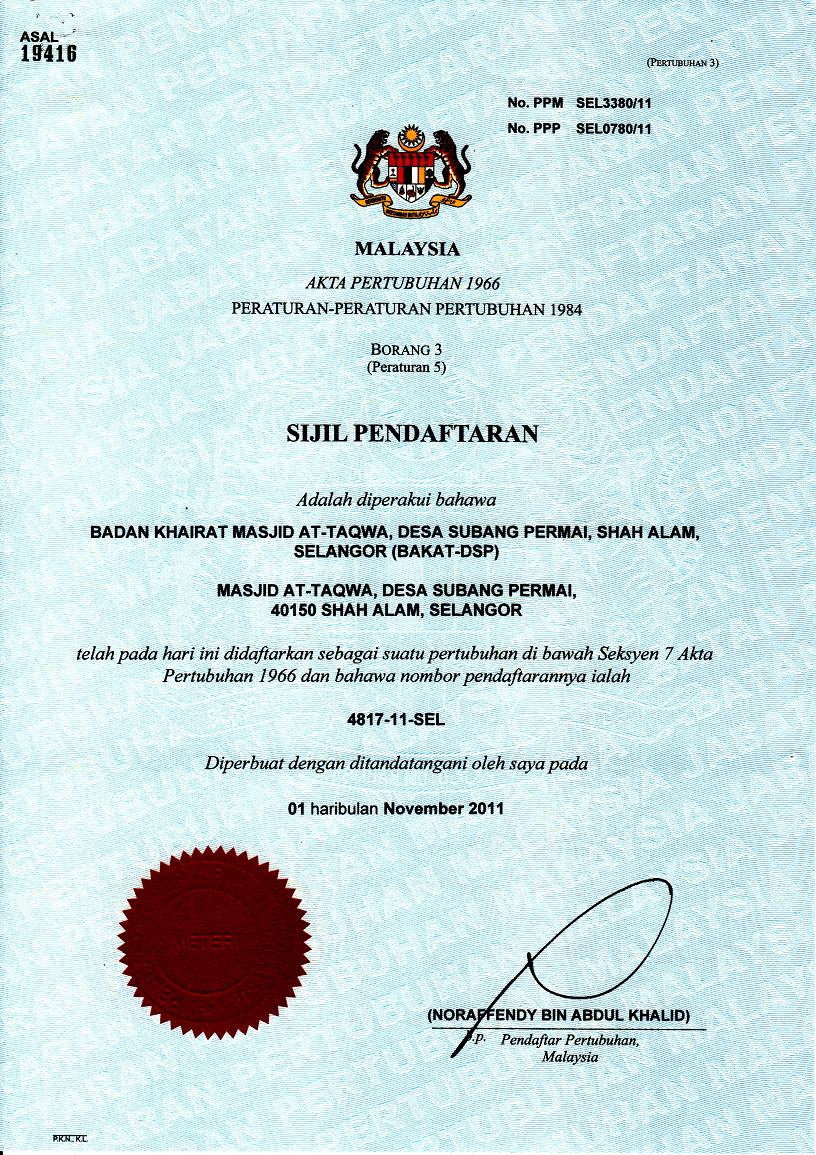 Ahli-ahli pertubuhan ini terbuka kepada penduduk-penduduk beragama Islam yang bermastautin di qariah Masjid At-Taqwa, Desa Subang Permai dan dari kawasan sekitarnya. Bagi tujuan pendaftaran, ketua keluarga disarankan didaftarkan sebagai ahli dan manfaatnya meliputi ahli tanggungannya yang sah disisi undang-undang.